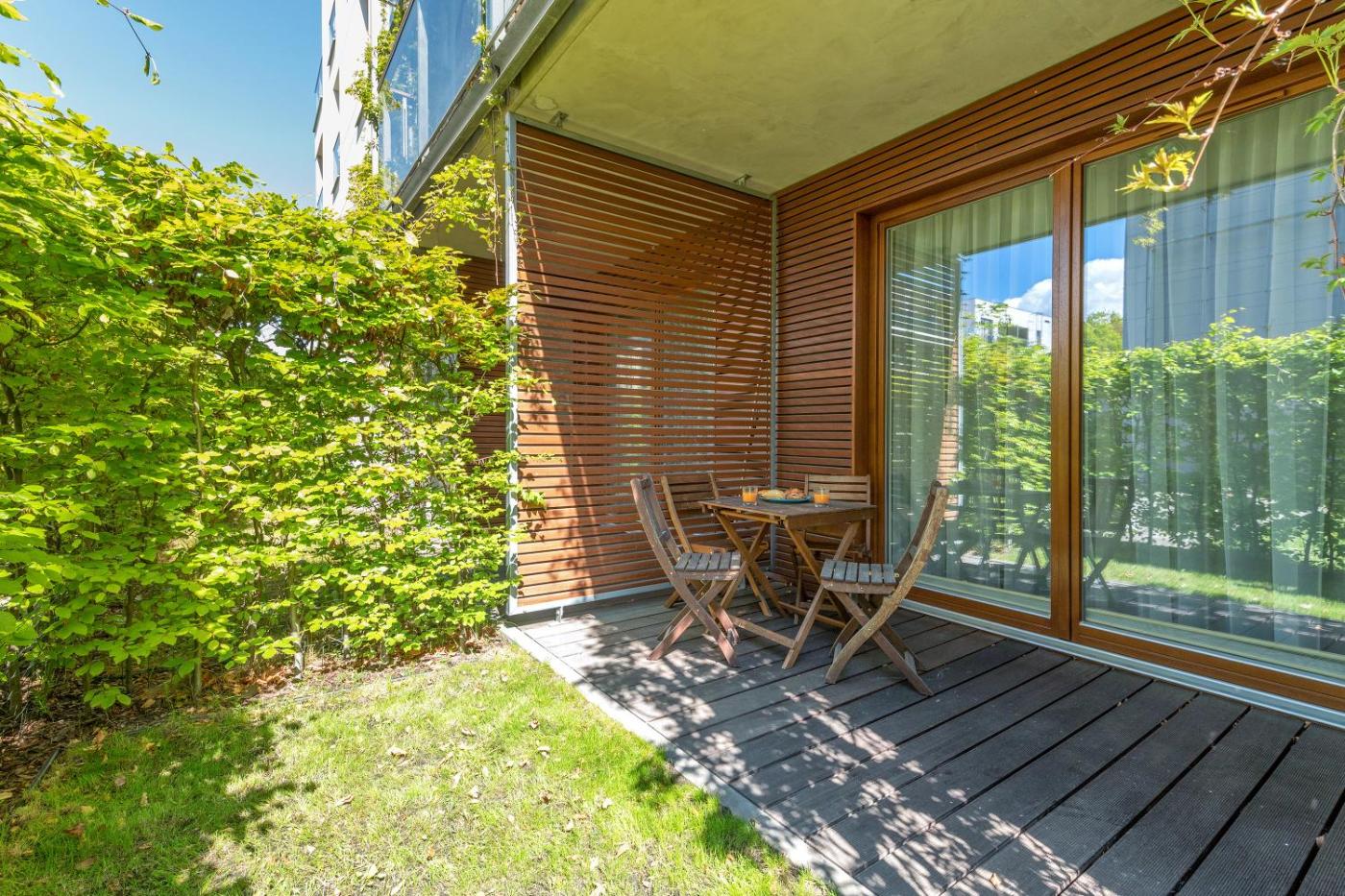 W apartamencie zapewniono taras, sypialnię (1), salon z telewizorem z płaskim ekranem, aneks kuchenny ze standardowym wyposażeniem, takim jak lodówka i zmywarka, a także łazienkę (1) z prysznicem. Goście mogą podziwiać widok na ogród. W apartamencie zapewniono ręczniki i pościel.