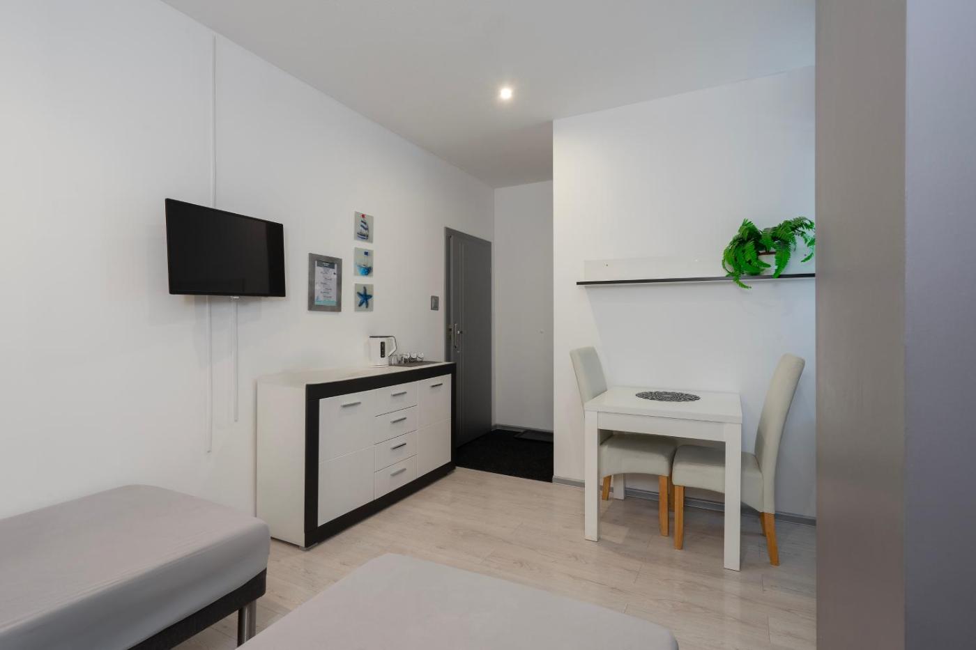 Apartament z 1 sypialnią. In the fully equipped kitchenette, guests will find a stovetop, a refrigerator, a dishwasher and kitchenware. The apartment offers a private entrance, a dining area, a wardrobe, a flat-screen TV with cable channels, as well as city views. The unit has 2 beds. Apartament - 2 osobowy. Powierzchnia pokoju ok.: 17 mkw.